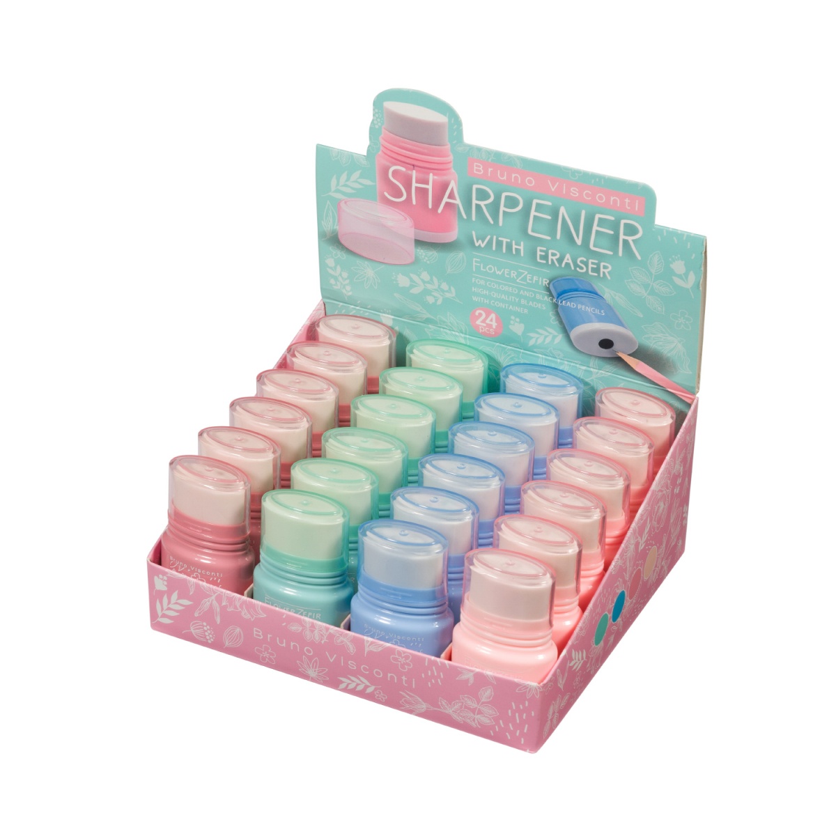 «FLOWER ZEFIR» ТМ Bruno Visconti - это удобная, многофункциональная, безопасная, с гарантией качества канцелярская принадлежность. Три в одном: точилка, ластик, контейнер для стружки. Пригодится как для выполнения рабочих задач в офисе, так и для учебы. Ну, а нежный, цветочный дизайн порадует прежде всего романтичных натур и тех, кто не терпит серых будней.
