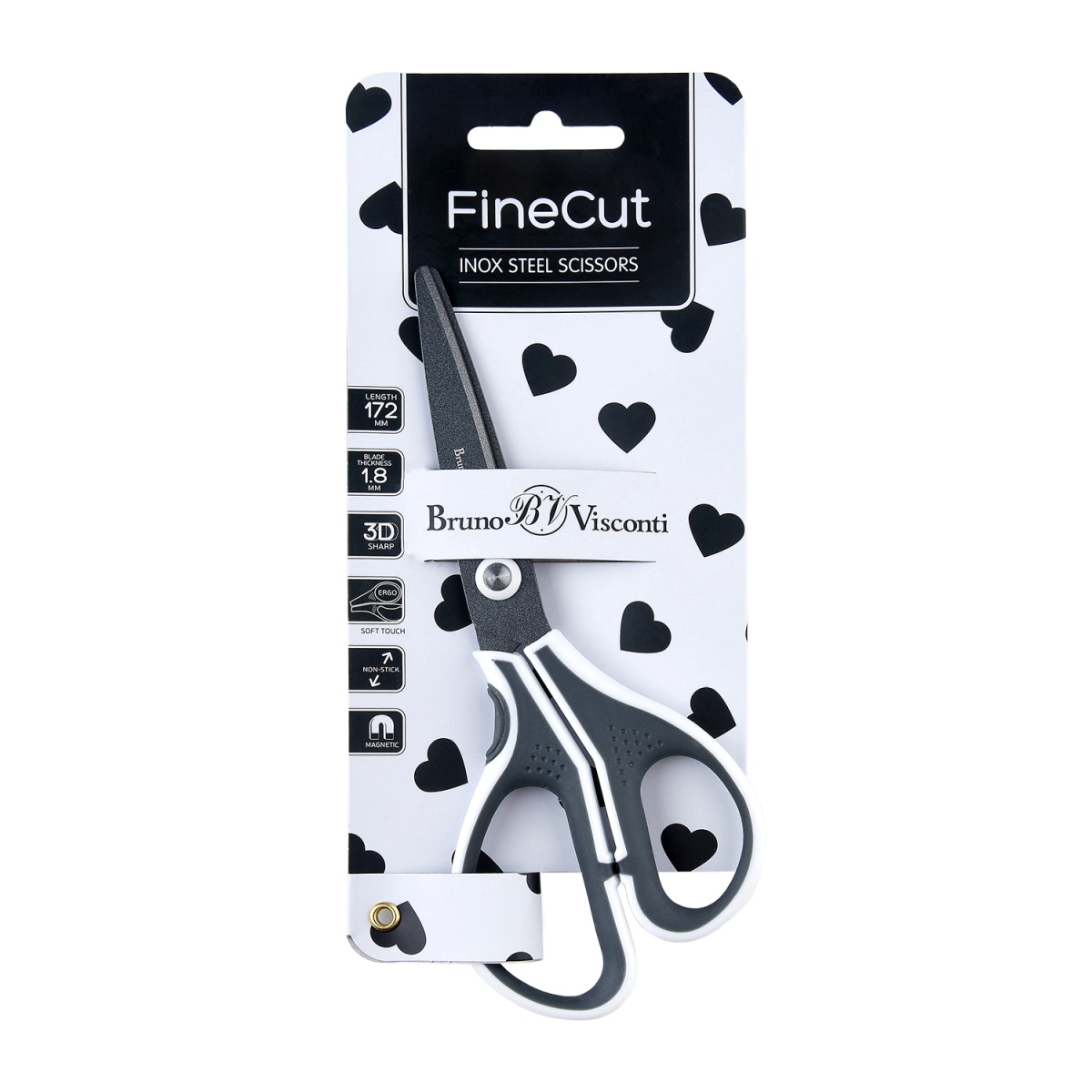 Максимально удобные для работы в офисе или при создании декоративных поделок ножницы «FINECUT» от Bruno Visconti. Они изготовлены из нержавеющей стали со специальным тефлоновым покрытием, позволяющим работать с липкими и самоклеящимися материалами.