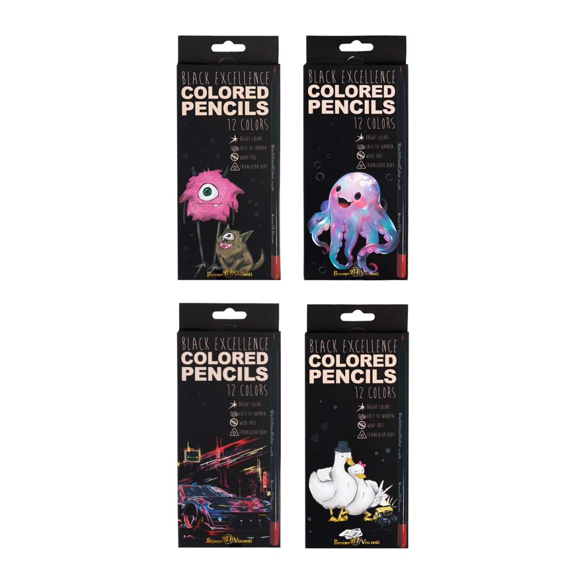 Набор из 12 цветных пластиковых карандашей «BlackWoodColor» в стильном черном корпусе. Принципиально новый дизайн продукта и упаковки при неизменно высоком качестве ТМ Bruno Visconti.