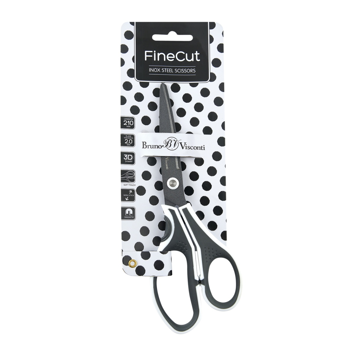 Максимально удобные для работы в офисе или при создании декоративных поделок ножницы «FINECUT» от Bruno Visconti. Они изготовлены из нержавеющей стали со специальным тефлоновым покрытием, позволяющим работать с липкими и самоклеящимися материалами.