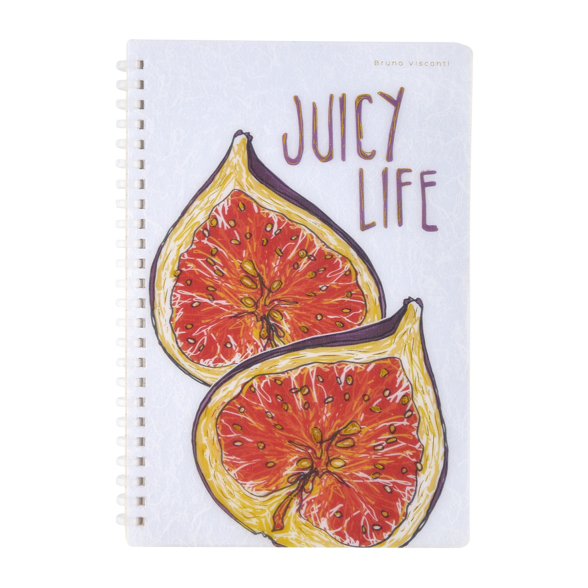Тетрадь на силиконовом гребне "JUICY LIFE. Инжир" от Bruno Visconti в клетку для ведения записей различного характера.