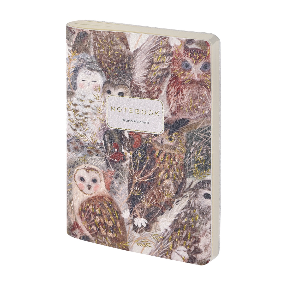 Тетрадь в линейку формата А6 "ВОЛШЕБНЫЕ СОВЫ" ТМ Bruno Visconti для ведения записей различного характера. Гибкая обложка изготовлена из экокожи с авторским принтом и является не только главным украшением тетради, но и надежно защищает внутренний блок от внешнего воздействия. Обложка и блок имеют скругленные углы. Блок 60 листов изготовлен из бежевой бумаги 80 г/кв.м.