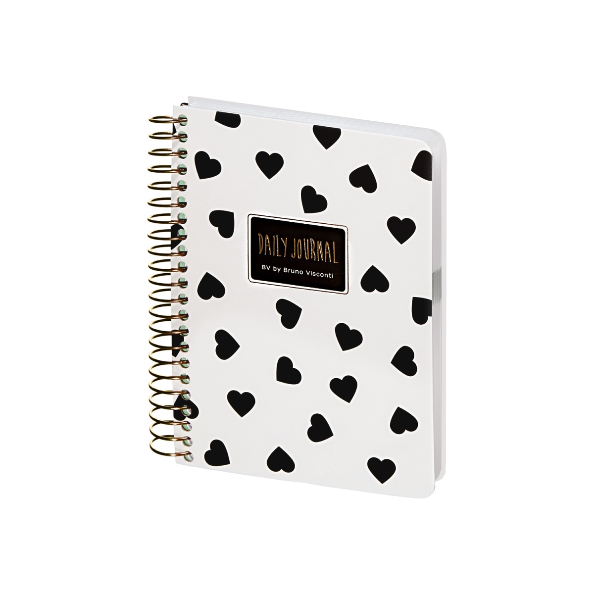 Ежедневник А6 т/о спираль 136л BV Black White Сердечки 3-703/01