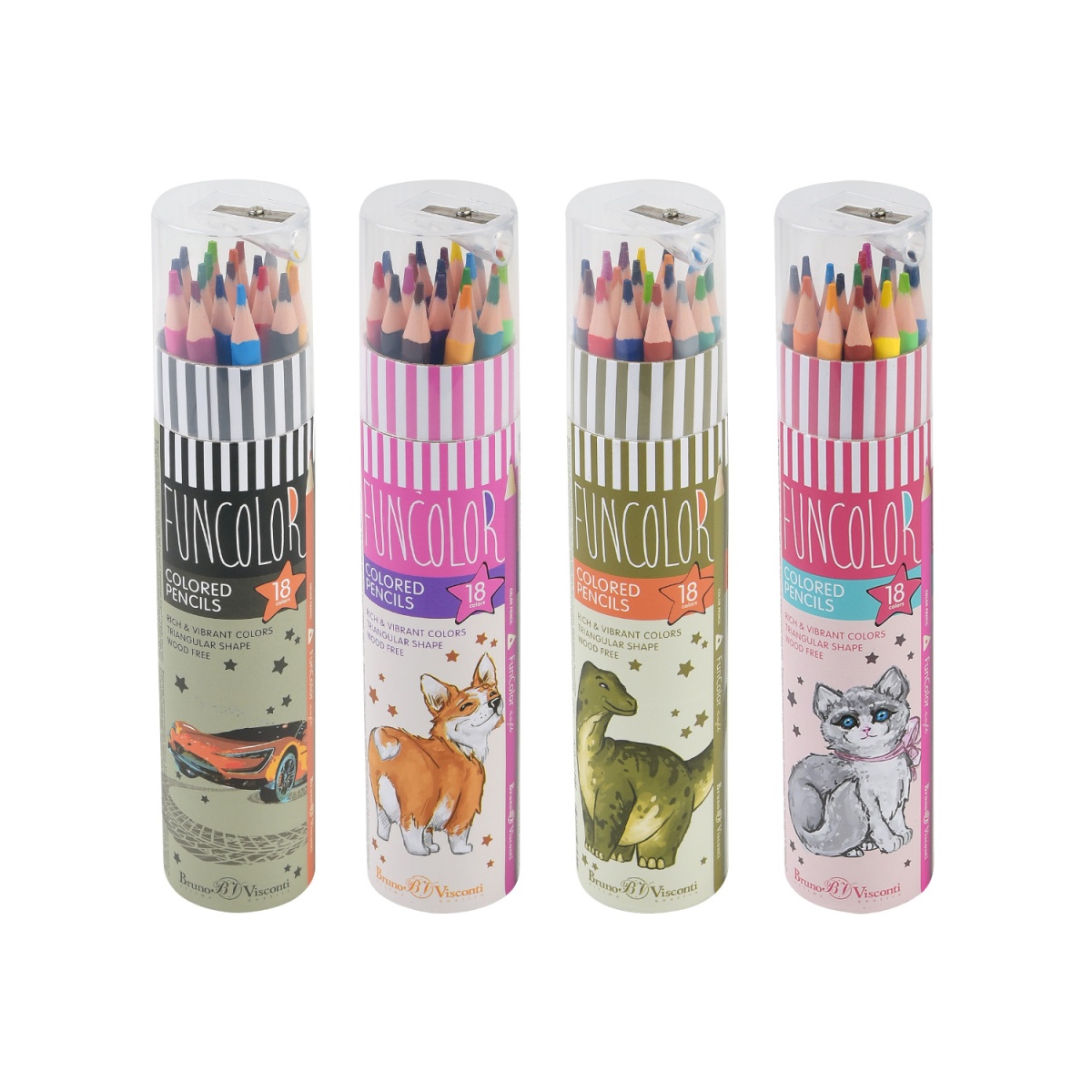 Цветные карандаши «FUNCOLOR» ТМ Bruno Visconti – пластиковые, поэтому их грифель надежно защищен от деформации и поломки. Грифель отцентрован и легко затачивается, цветные пигменты в его составе абсолютно безопасны. Карандаши рисуют ярко и мягко, оставляя на бумаге равномерный след.