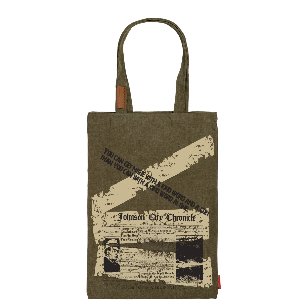 Сумка с ручками ткань 350*470 BV 16-003-02/02 Хаки Газетные Хроники с карманом