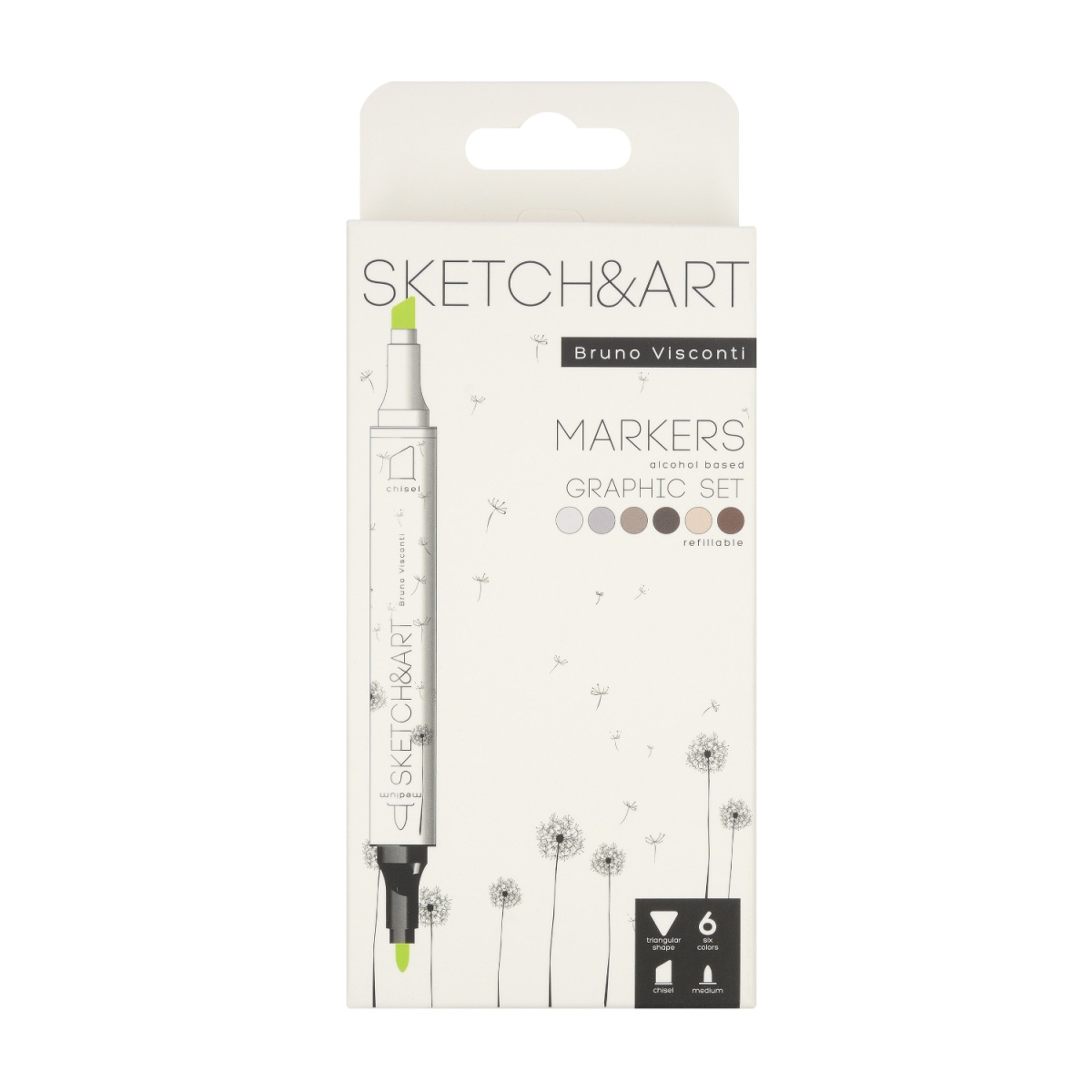 Высококачественные профессиональные маркеры «SKETCH&ART» для рисования, набросков, дизайнерских работ. В наборе 6 цветов, специально подобранных под тему.