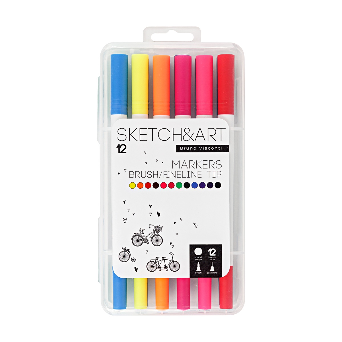 Набор двусторонних маркеров «Sketch&Art» – это 12 маркеров наиболее востребованных цветов, позволяющих рисовать в различных техниках благодаря двум видам наконечника: линер и кисть.